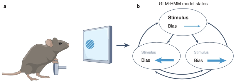 - Ashwood, Z. C., Roy, N. A., Stone, I. R., Interna@onal Brain Laboratory, Urai, A. E., Churchland, A. K., … & Pillow, J. W. (2022). Mice alternate between discrete strategies during perceptual decision-making. Nature Neuroscience, 25(2), 201-212. https://doi.org/10.1038/s41593-021-01007-z