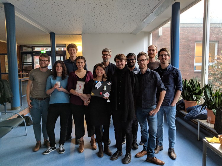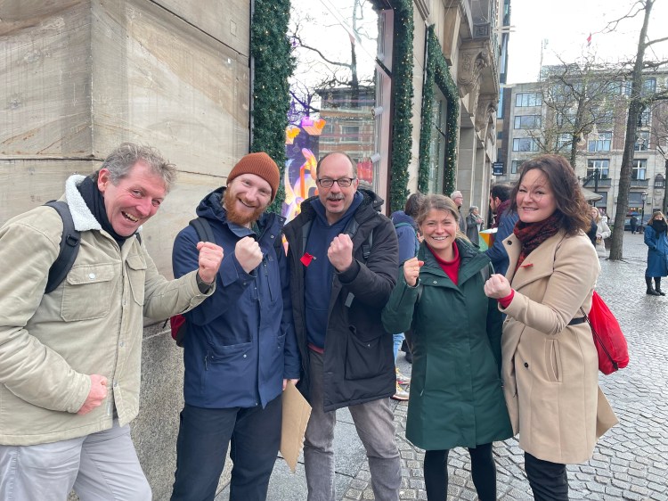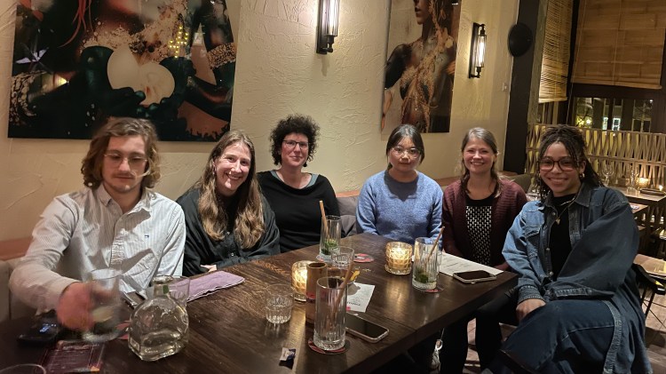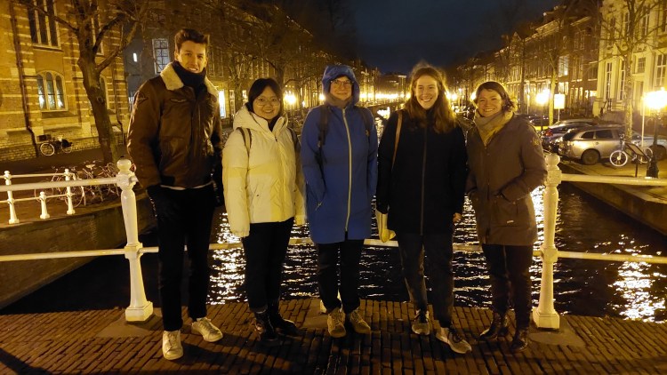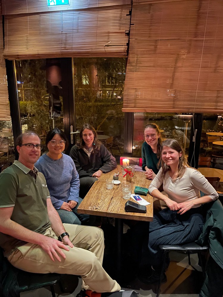 Lab outing on a cold Leiden night: Robin, Fenying, Sonja, Philippa, Anne